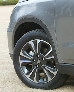 新デザインとなるアルミホイールは切削加工&ガンメタリック塗装が施されている。タイヤサイズは215/55R17を採用。ちなみに撮影車のタイヤ銘柄はコンチネンタルのコンチ・エコ・コンタクト5となっていた。