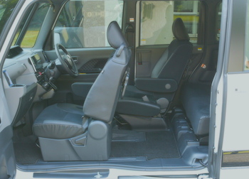 まずはミラクルウォークスルーパッケージだ。これはドライバーズシートを最大540mmスライドできる機能(車両停止時)で、前後席でのウォークスルーや、ドライバーズシートで寛ぐことなどを可能としたもの。