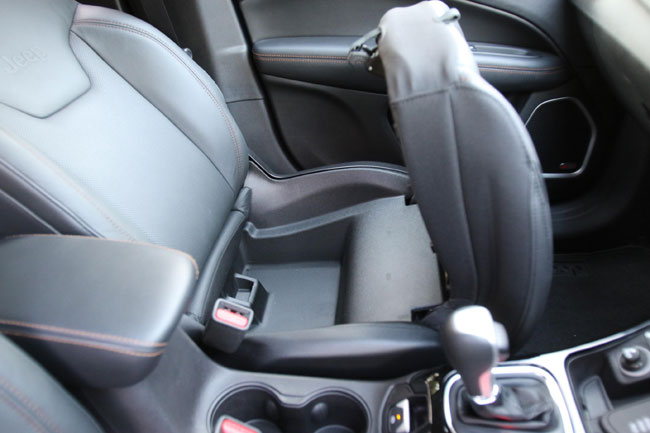 助手席の座面下にある収納スペース。さほど容量は大きくないが、気の利いたスペースだ。