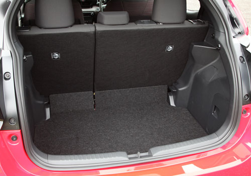 脚もとは広々とまでは表現できないが、狭いとは感じさせないリアシート脚下。全グレードで6:4分割可倒式を標準装備している。
