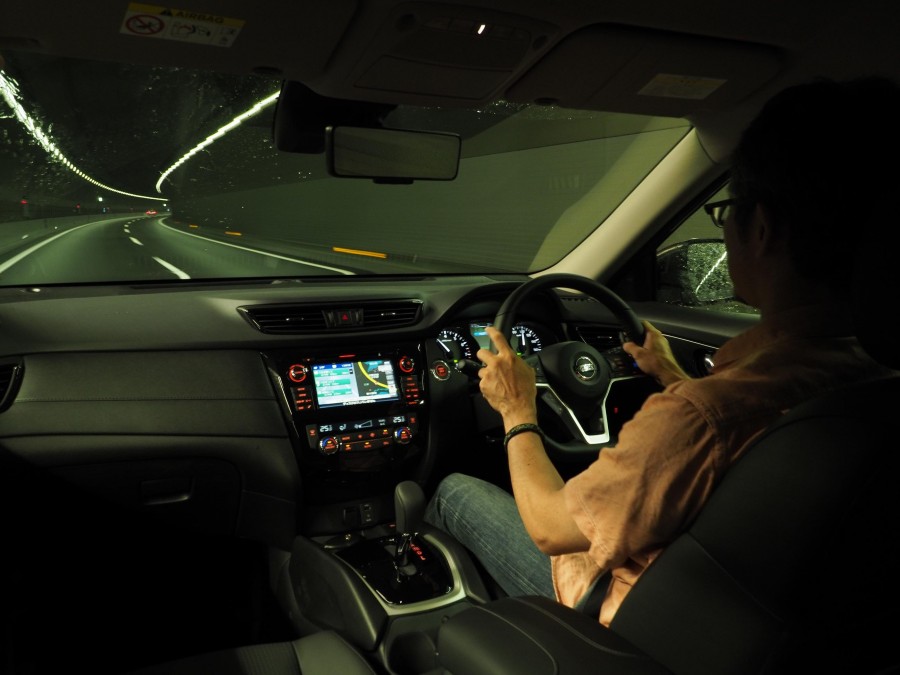 それならば、と、トンネルに入ったところでワイパーを間欠モードにして、再度プロパイロットのスイッチをON。すると今度は設定した速度を上限とした自動運転制御がキチンと機能し始めた。車間距離保持のスピード調節や、車線キープのステアリング制御はごく自然に行われるため、不安感はほとんどない。スイッチ操作も直感的に行えるしくみになっており、使い慣れればかなりドライバーの疲労が軽減できるシステムだ。
