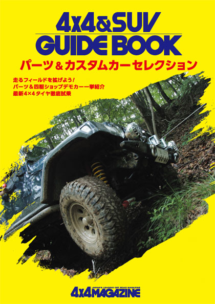 そんなわけで、4×4MAGAZINEから久々の紙媒体が発行される。誌名は「4×4&SUV GUIDE BOOK パーツ&カスタムカーセレクション」で、最新の四駆カスタマイズに関するトピックをまとめた1冊だ。内容は、四駆タイヤやパーツのインプレッション、メーカー&ショップのデモカー解説などをメインに、四駆業界のトップランナーインタビュー、ショップガイドなど盛りだくさん。判型はA4、本文104ページというボリュームで、価格は500円(税抜き)となっている。なお、流通は四駆ショップがメインで、書店では取り扱われない。3月初旬には全国の四駆ショップの店頭に並べられる予定なので、久々に4×4MAGAZINEが出す「雑誌」を、なるべく多くの人に楽しんでいただければ幸いだ。