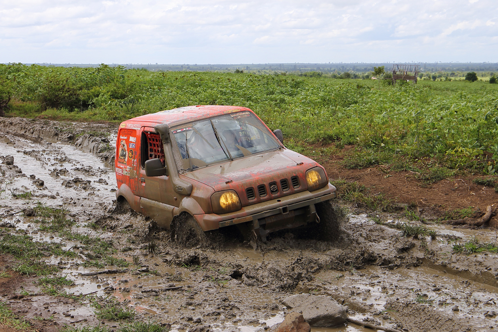 そうしたウォーターベッドと呼ばれる極度の泥濘地に埋没した車両を横目に、順位を上げていったのが竹野悟史/道畑勝博組。スズキ・ ジムニーが9位に浮上という離れ業を見せた。