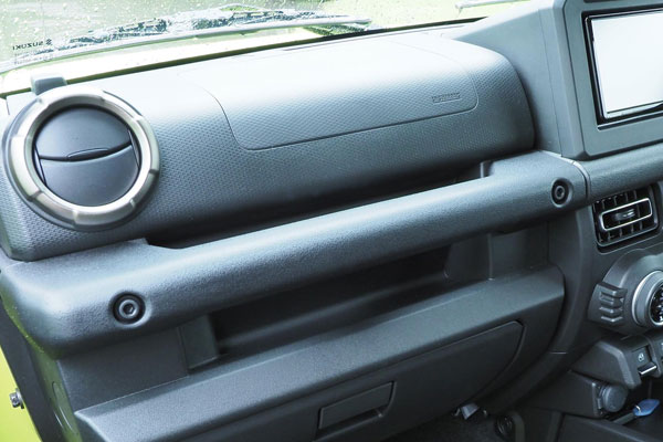 前述したトランスファーレバーの復活もそうだが、よく見ると助手席側ダッシュボード上に太めのアシストグリップが復活している。スズキの説明によれば、これは主に乗降時に使うもので、走行中に乗員が身体を支えるためのアシストグリップではないとのこと。