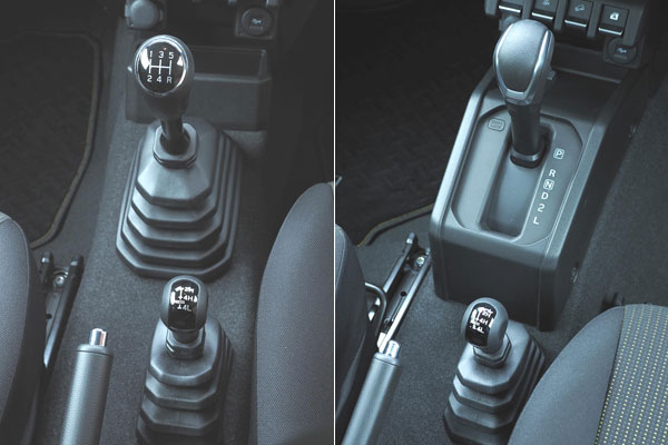 5速MT(左)と4速AT(右)のセレクターとトランスファーレバー。
