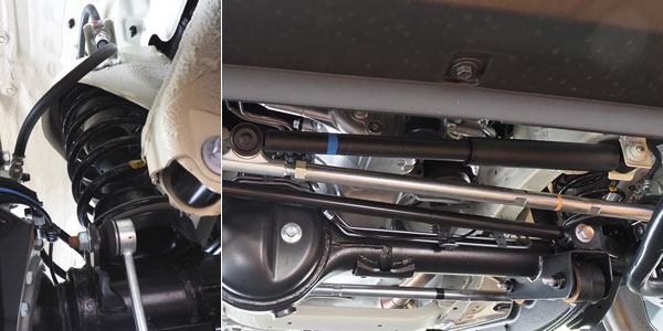 コイル+リジッドアクスル式のフロントサスペンション。ステアリングダンパーが新設された。