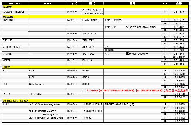 V37スカイライン、CR-Z(2015/10~)、N-BOX SLASH、VEZEL など