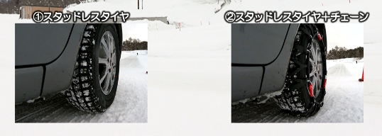 4.ノーマルタイヤ+チェーンで実施した。
