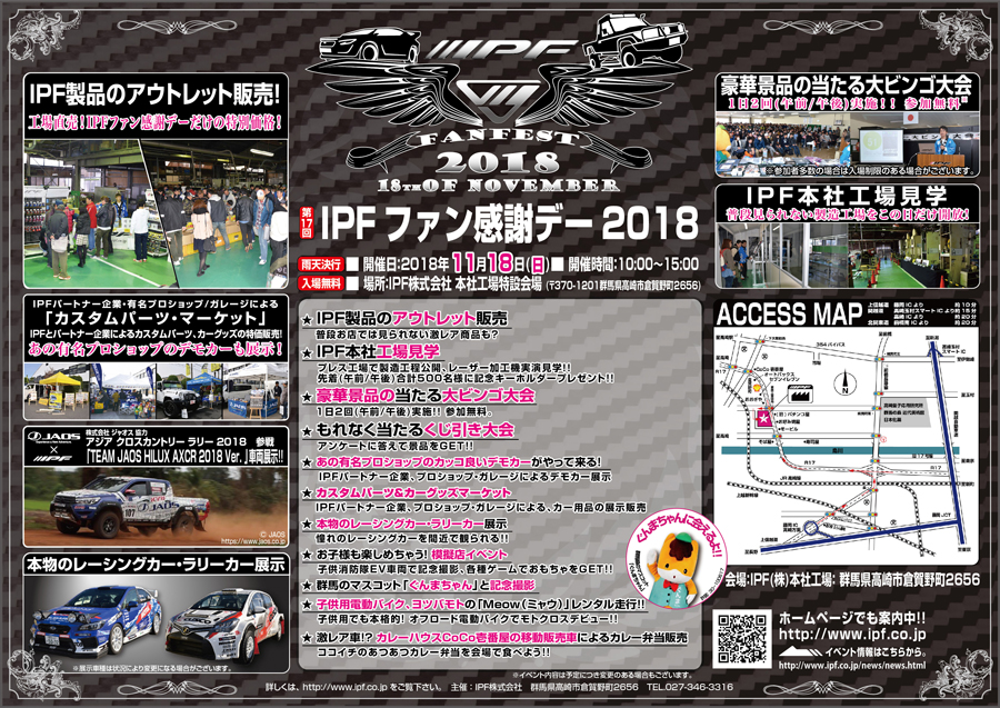 AXCR2018 TEAM JAOS協力企業でもあるIPF(株)主催イベント「IPFファン感謝デー2018」が今年も開催される。