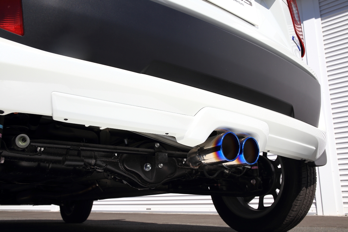 JAOS初のセンター出しマフラー「BATTLEZ×EX type ZS-C Ti」はリヤバンパーをカットした部分と純正の切り欠き部分をカバーするガーニッシュをセット。