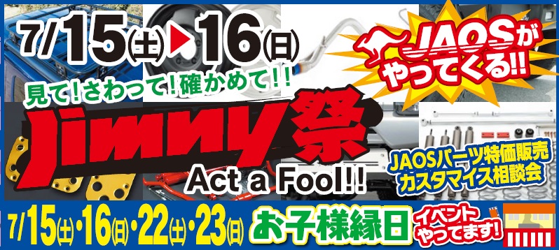 7月15日(土)7月16日(日)、石川県カルバン野々市本店にてジムニー祭りが開催される。
