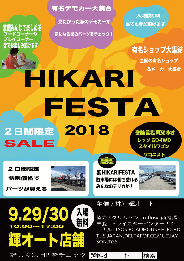 毎年恒例となりました輝オート様主催イベント「HIKARI FESTA 2018」が開催される。
